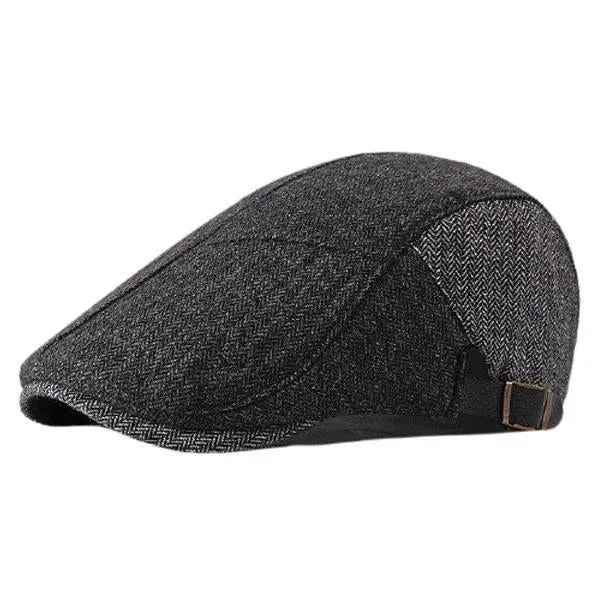La Casquette Plate Houston en laine et coton, au motif à chevron noir et gris, offre un look rétro indémodable. Réglable pour un port ajusté. Ajoutez une touche vintage à votre style.